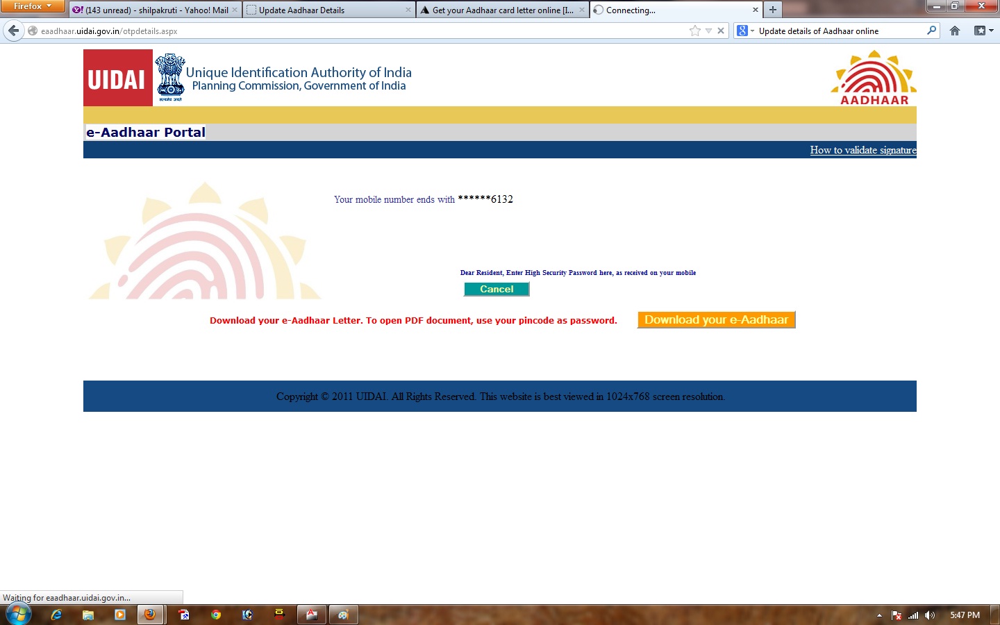 And there you go, you will get a link to download the PDF copy of your Aadhaar / UIDAI letter :)